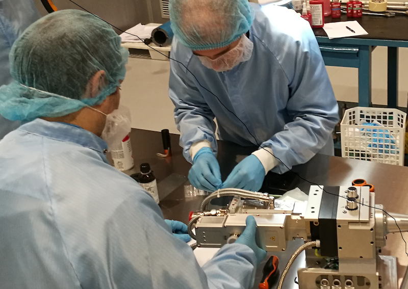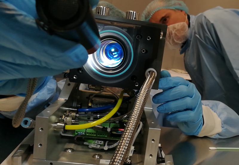 L’assemblaggio avviene anche in atmosfera controllata. Ellena è dotata di una camera bianca di classe ISO 7 per poter assemblare componenti ottiche o elettroniche in atmosfera pulita, evitando contaminazioni con particolati. Contatori di particelle garantiscono il controllo dell’ambiente durante il processo.